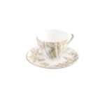 – شکل: فنجان با لبههای موجدار و نعلبکی هماهنگ، مناسب برای سرو چای، دمنوش یا قهوه